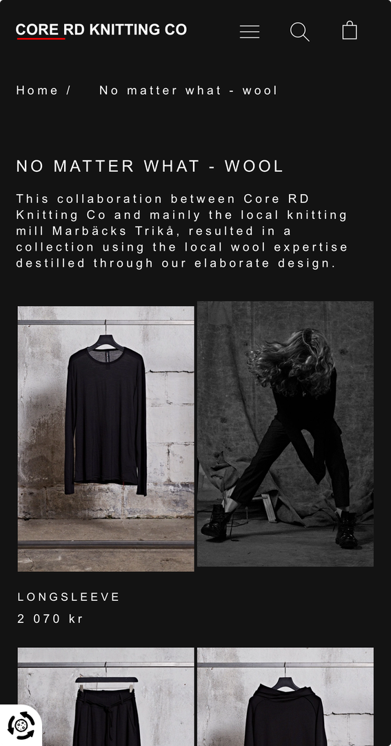 Design / UX - Design made by Viskan in close collaboration with Core RD Knitting Co team