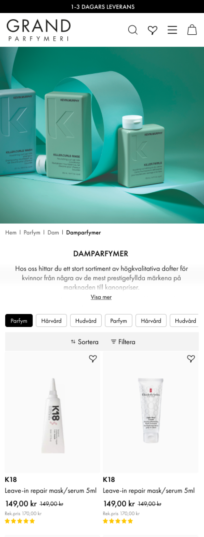 Grand Parfymeri's website showcases a minimalist design ethos, emphasizing clarity and simplicity to ensure quick and intuitive navigation for its users. Leveraging Hello Retail's technology, they enhance the user experience by incorporating better search capabilities and personalized recommendations, guiding customers to their ideal skin and hair care products. This strategic alliance not only elevates the online shopping experience but also aligns with Grand Parfymeri's commitment to customer satisfaction and engagement.