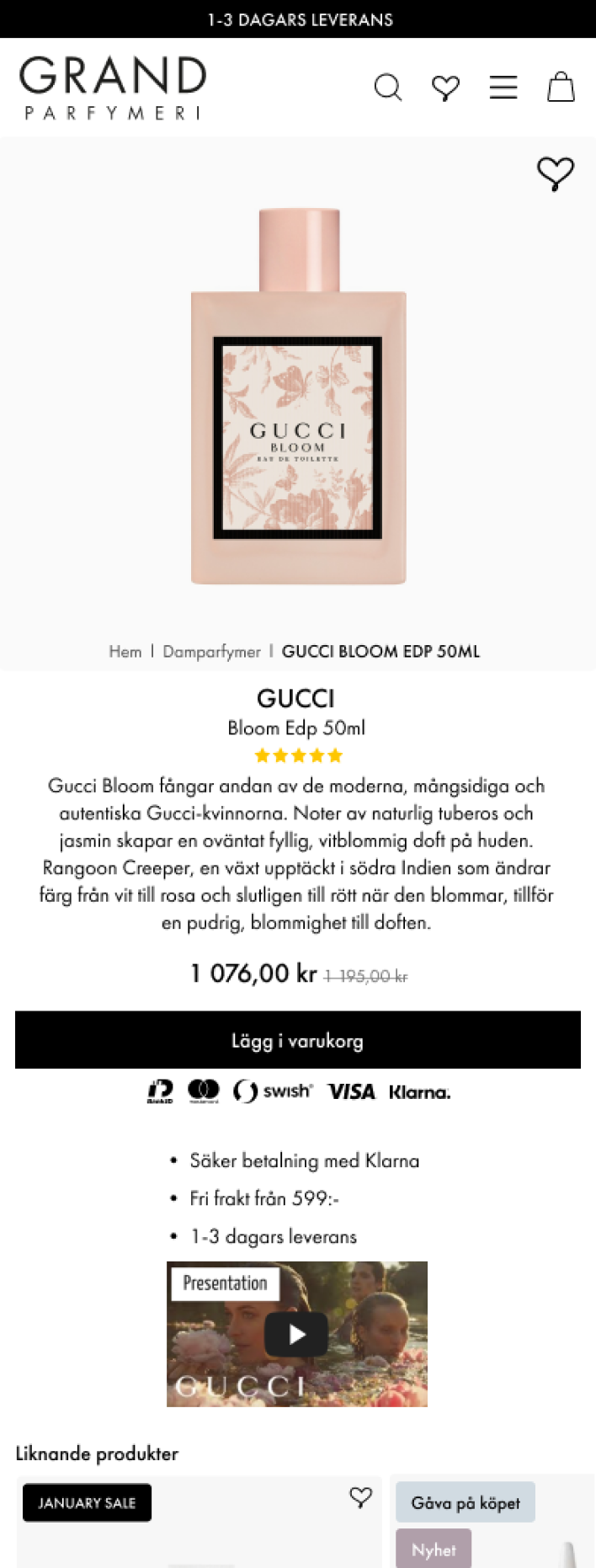 Grand Parfymeri offers a streamlined checkout process designed for speed and simplicity, minimizing barriers to purchase. They have integrated upsell opportunities throughout this process, enhancing the customer experience by suggesting complementary products without complicating the transaction.