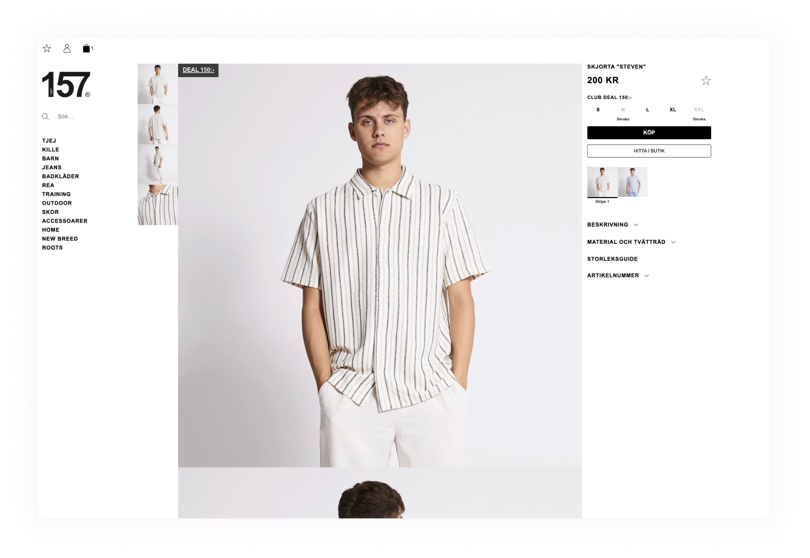 Because of the slim supply of products, Lager157 customers could familiarize themselves with the various models and delve into them in greater detail through the product hero image and descriptive product text.
